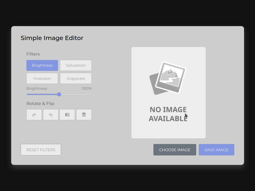 This is a basic image editor app BUT VERY USEFUL. I used Html, Css and Js to make this. It can do basic editing like color change, brightness change, saturation change, grayscale, etc. and you can also save the image.